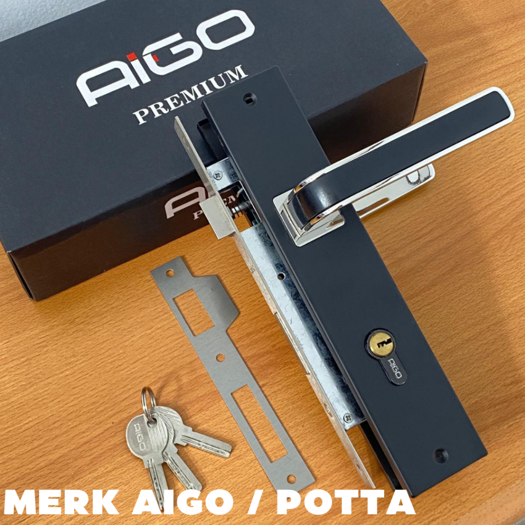1 SET KUNCI PINTU RUMAH KOTAK LENGKUNG HITAM DOFF GAGANG PINTU BESAR 25CM HITAM DOFF MINIMALIS