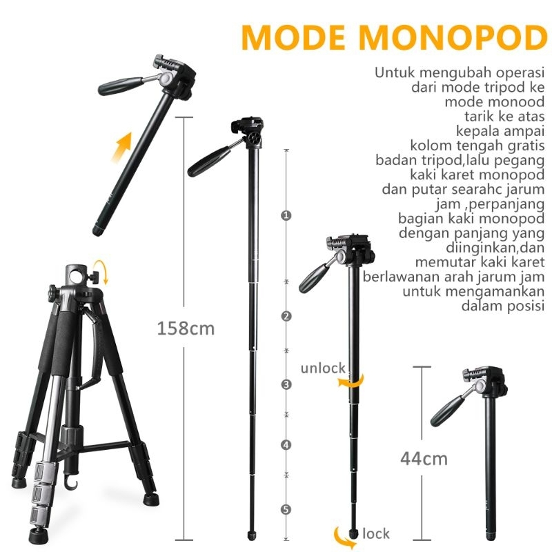 ZOMEI M1 Tripod Kamera Flat Lay Horizontal Overhead Camera DSLR Mirrorless Smartphone Tinggi 167cm