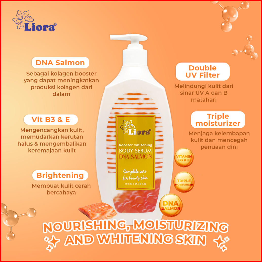 Liora Booster Whitening Body Serum Moisturizing Dna Salmon 750ml Body Lotion Mencerahkan Dan Menutrisi Kulit
