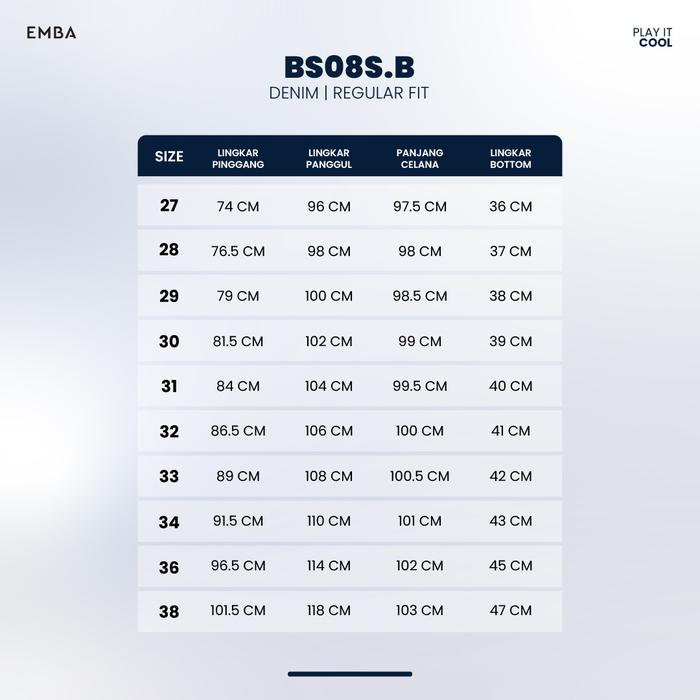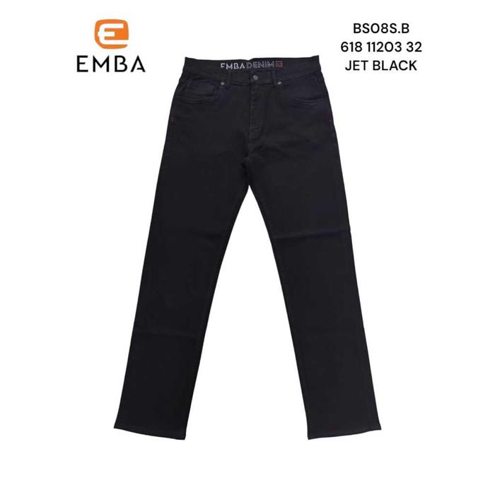 Emba Denim - Bs08S.B Celana Panjang Denim Pria Regular Fit Jeans Casual Soft Stretch Nyaman - Jet Black, 27