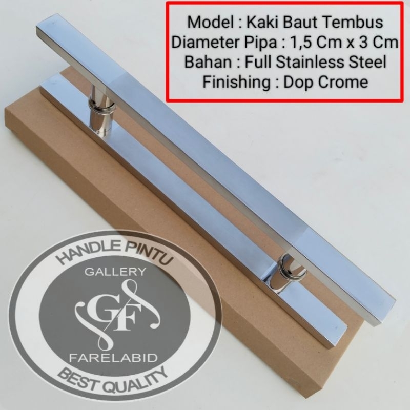 Handle Pintu Rumah Kaki Baut Tembus 60cm 45cm 33cm Gagang Tarikan Pintu Kaca Alumunium Stainless Steel