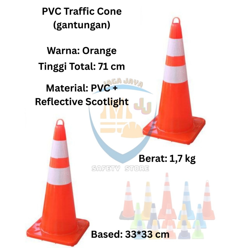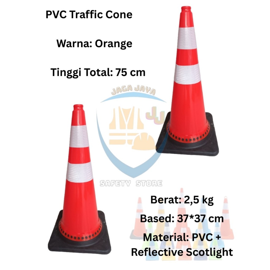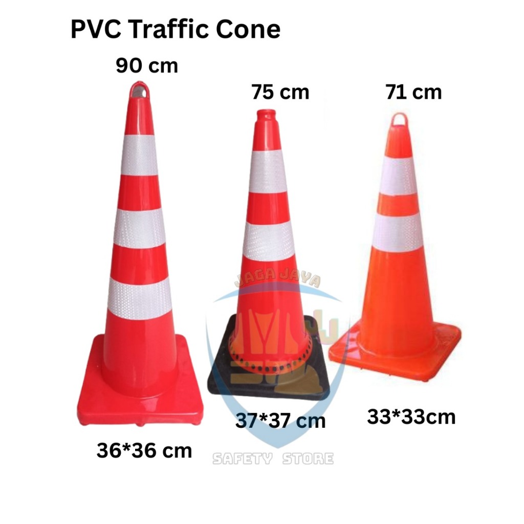 Safety Traffic Cone, Kerucut Lalu Lintas Rubber Tinggi 70cm Based Orange, 75cm Based Hitam, 90cm Based Orange Bahan Tebal Berkualitas Tidak Mudah Pudar