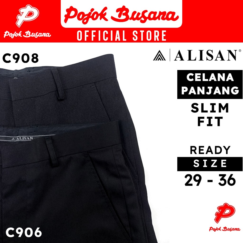 Pojok Busana Celana Panjang Formal Alisan Slim Fit Pria - Celana Kerja Bahan Cowok Sopan - Hitam