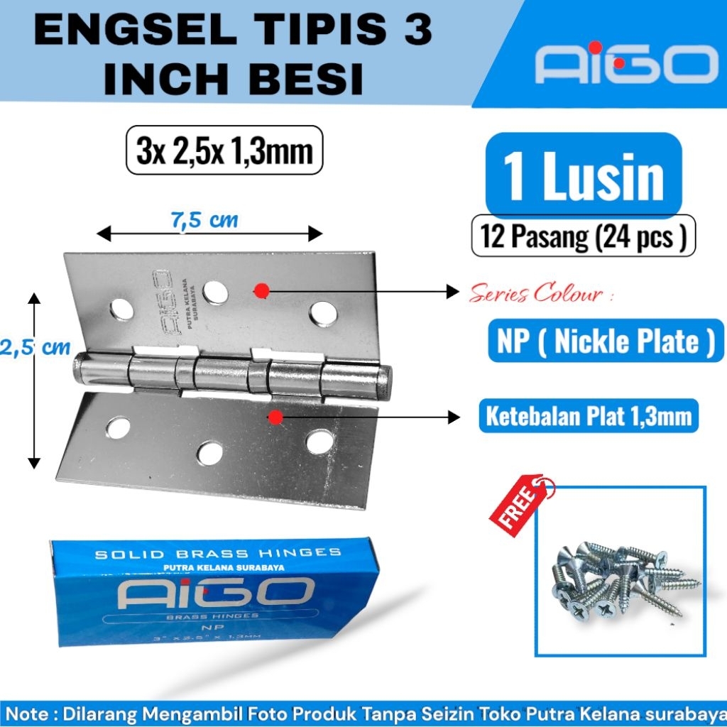 24 PCS 1 Lusin Engsel Tipis 3 inch AIGO Putih Engsel Jendela 3" AIGO HPP Engsel Tipis 3 inch AIGO Silver