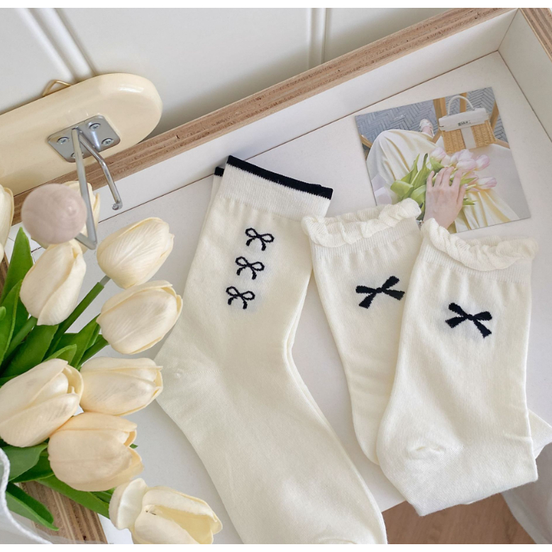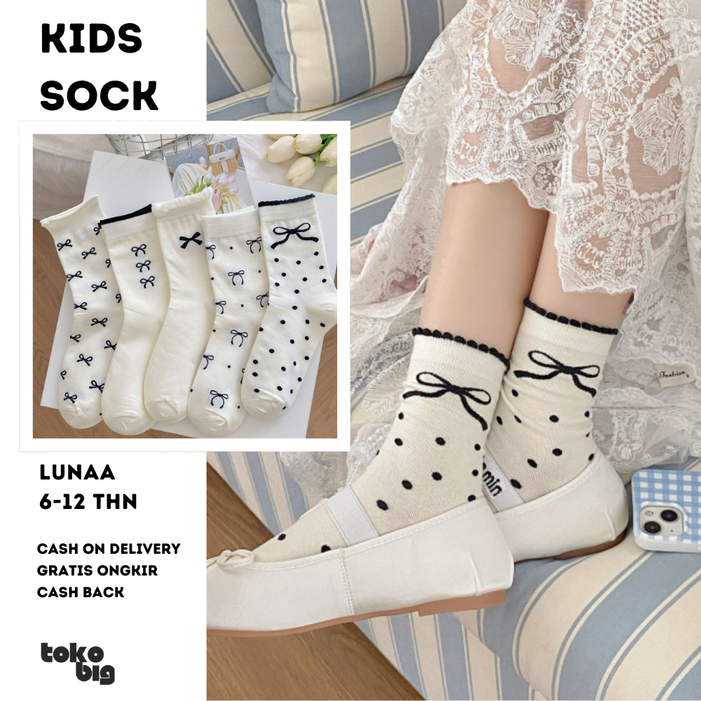[Tokobig] Lunaa Kaos Kaki Anak Import Kaos Kaki Anak Perempuan Motif Pita Warna Putih Murah Gratis Ongkir