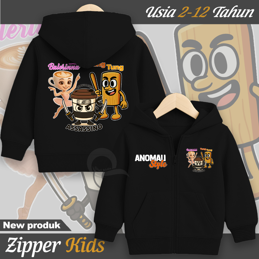 JAKET ZIPPER ANAK LAKI LAKI PEREMPUAN KARAKTER ANOMALI TUNG TUNG SAHUR UMUR 2-13 TAHUN JACKET UNISEX Murah Gratis Ongkir