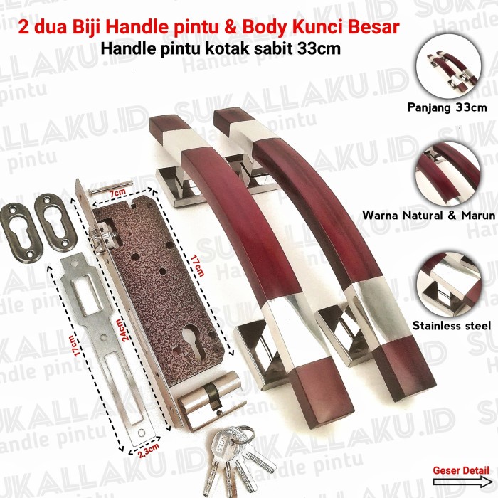 (2biji handle pintu rumah dan kunci set gagang pintu model sabit lengkung minimalis panjang 33cm 45cm