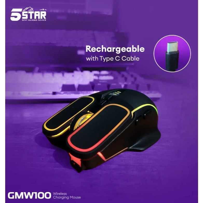 mall inline badge5Star Mouse pink Wireless Gaming Rechargeable Baterai Type-C Fast Charging 1600DPI RGB Light GMW100