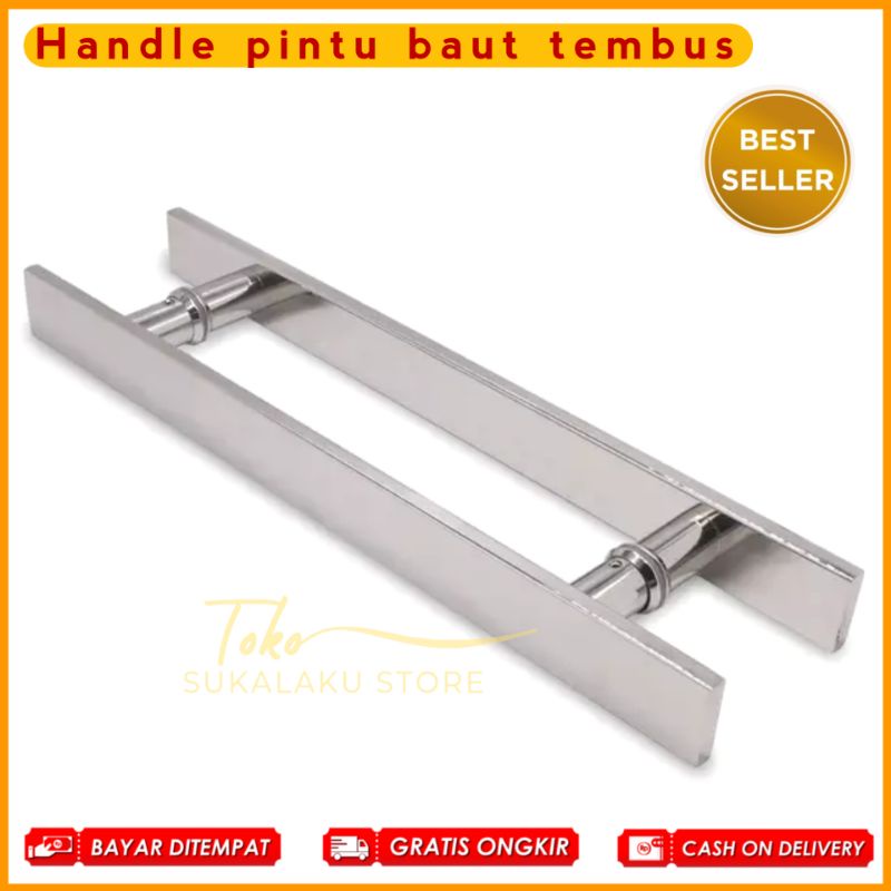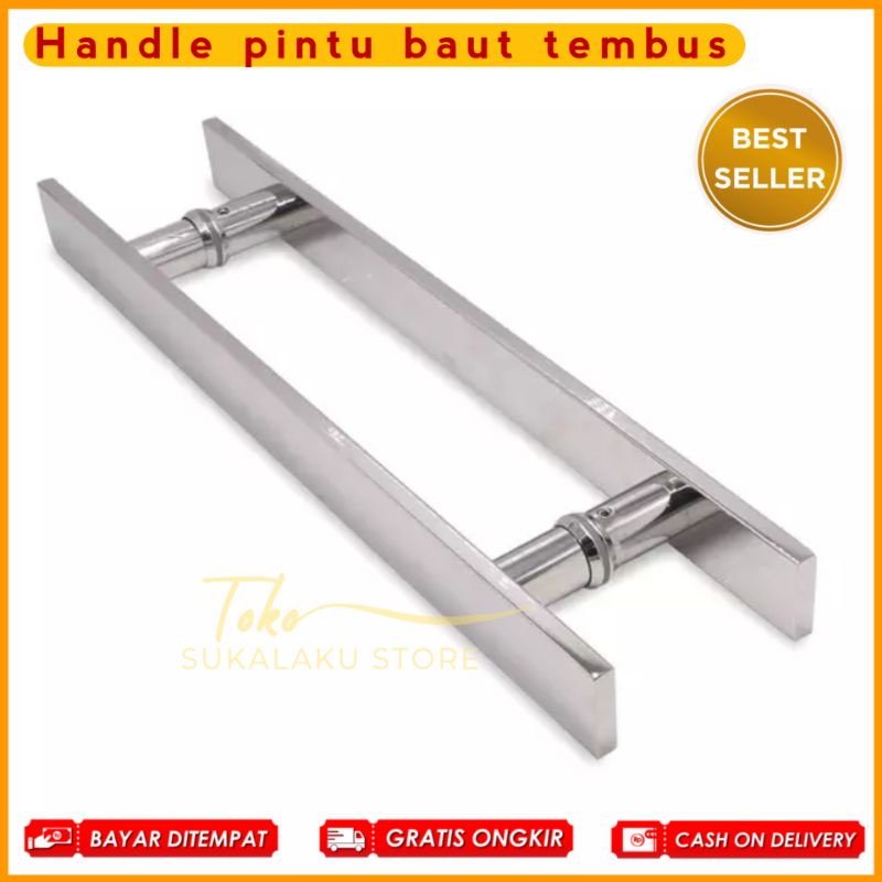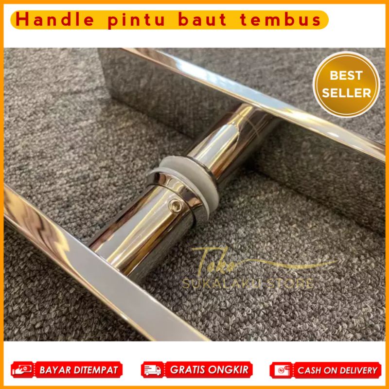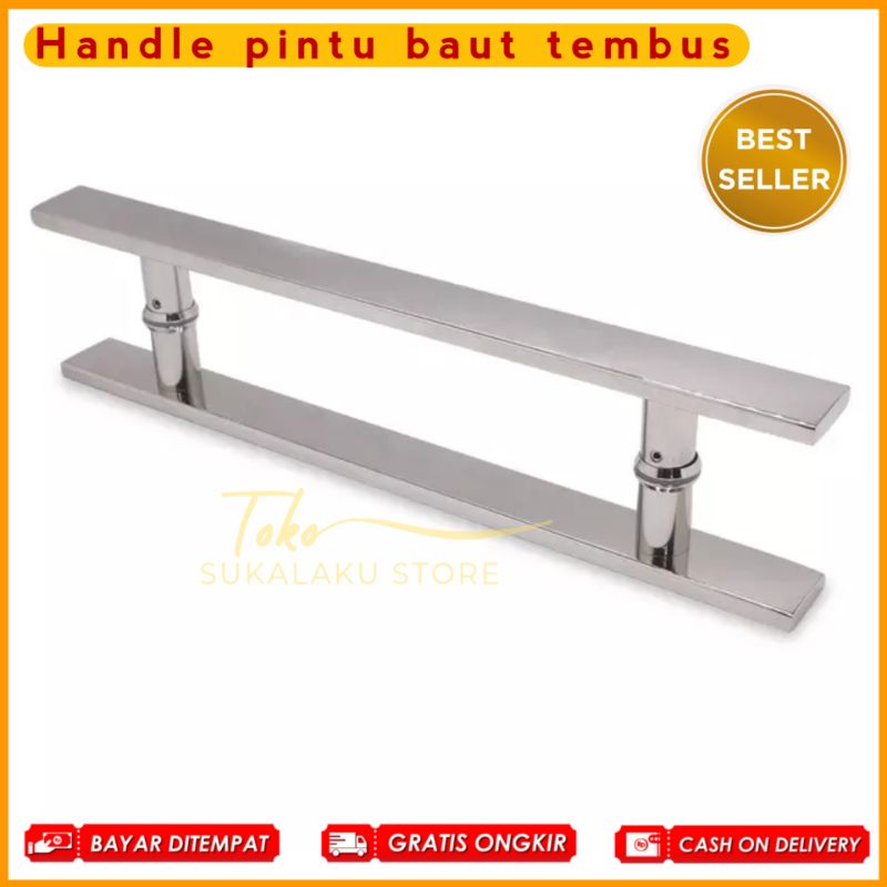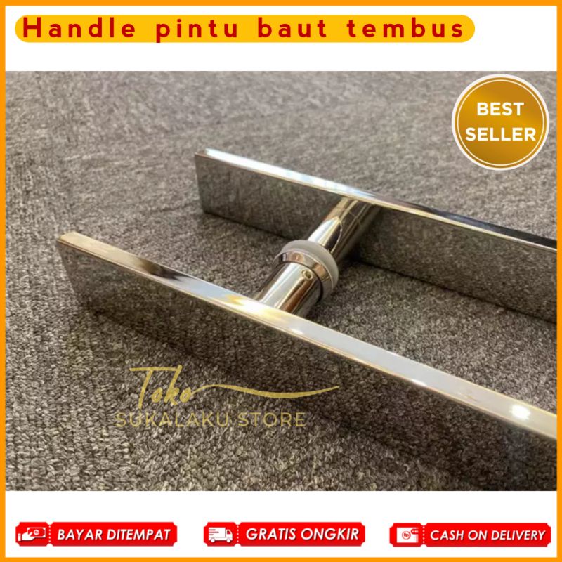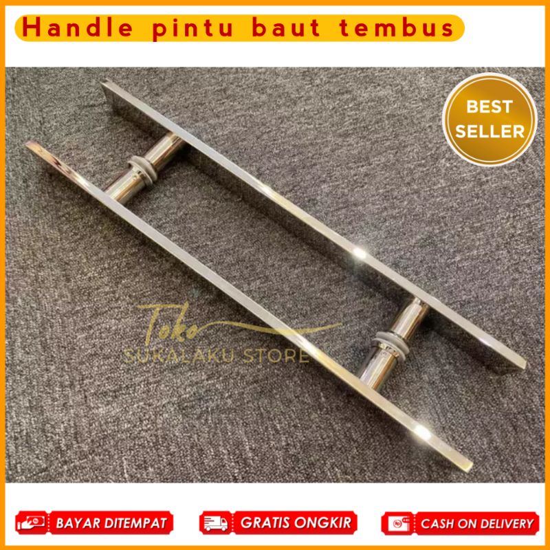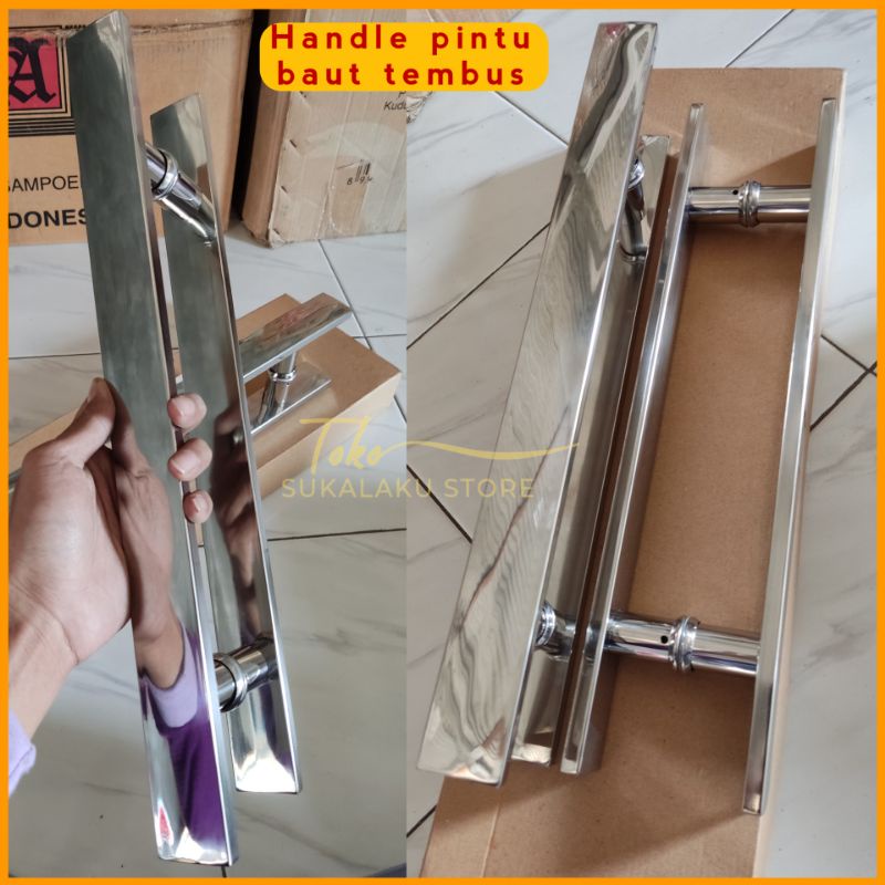 Handel pintu rumah kaki baut tembus panjang 45cm 60cm 100cm stainless full kilap