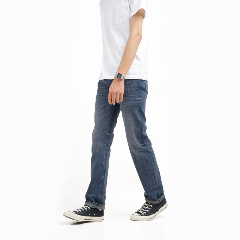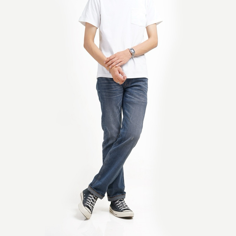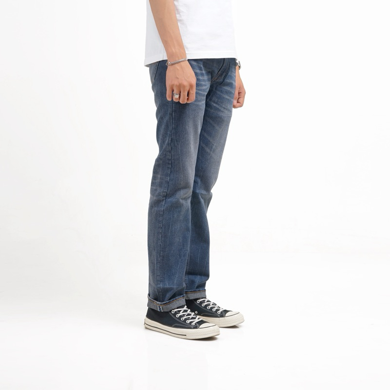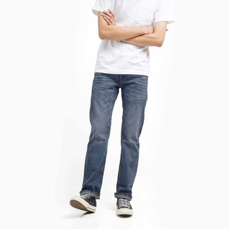 Volkvog Jeans Malaga Celana Panjang Washed Denim Pria Slim Straight Biru