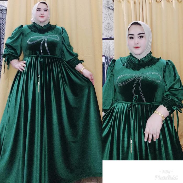 Dress Syifa Full Bludru Mewah Viral 2025 Lebar Mayung - Mahogani, Standart