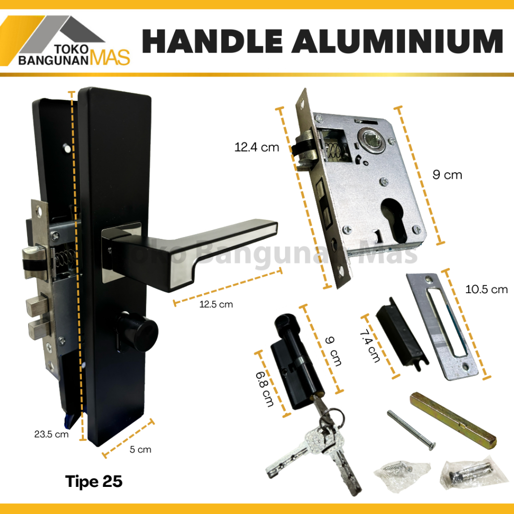 Handle Pintu Hitam GaganG Pintu Aluminium Silinder knob Gagang Pintu Gaya Eropa