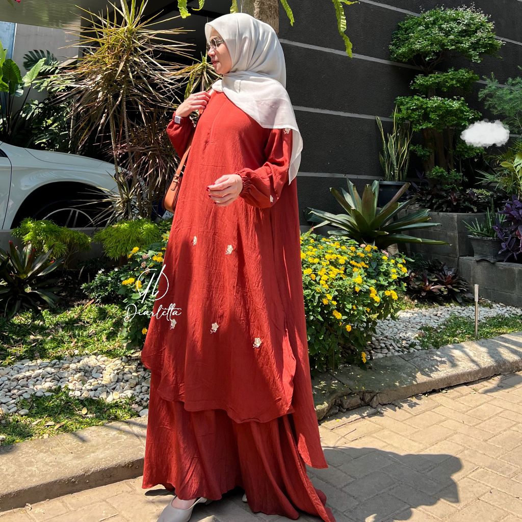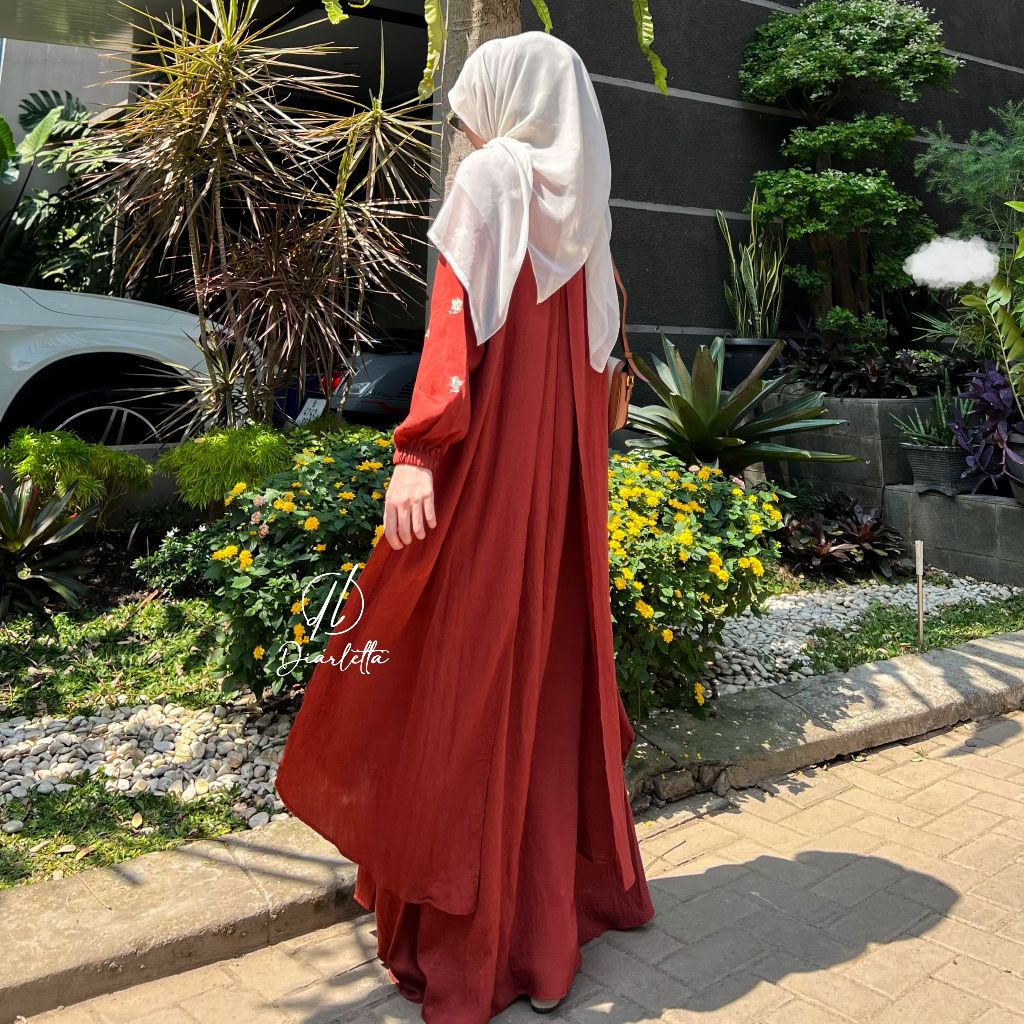 Kamari Dress Embordery Double Layer Polo Linen Busu Gamis Outer Viral by Diarletta