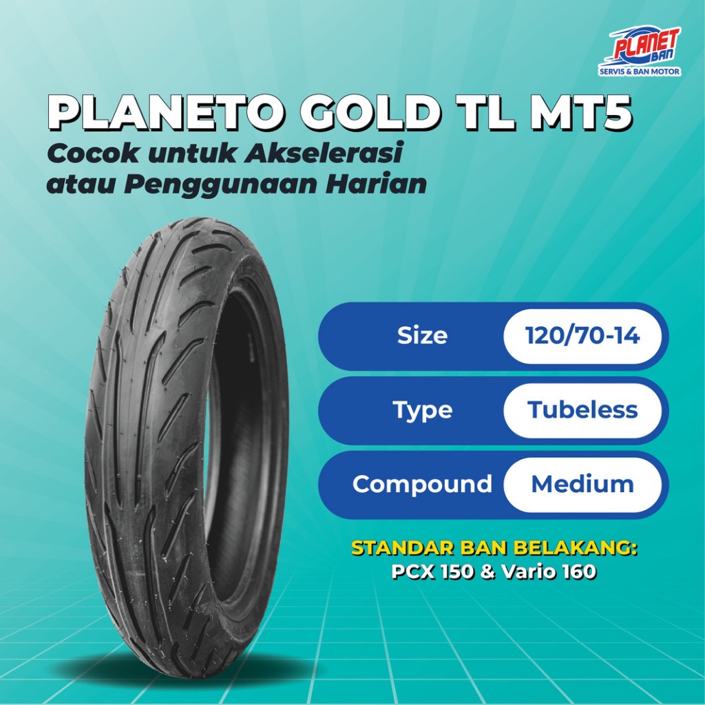 Ban Motor Ring 14 - 120/70 Planeto Gold MT5 (Ban Motor BELAKANG PCX 150, Vario 160)