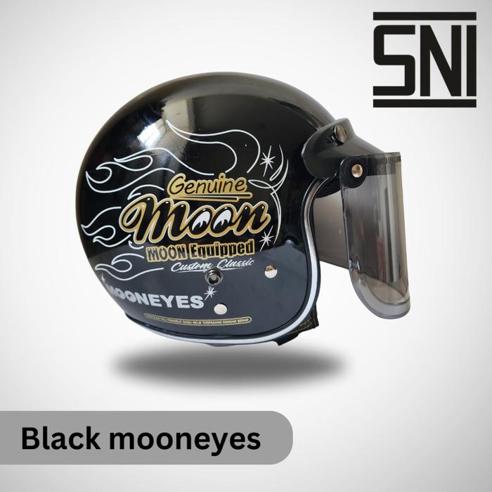 Helm Bogo Retro Classic Moon Eyes - Helm Gaya Klasik SNI helmcargloss vintage rsv - M.E Hitam Glossy Kaca Flat Smoke