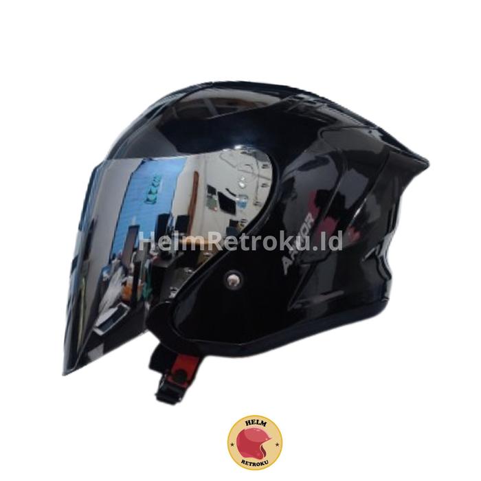 Helm JS ARMOR HALF FACE SOLID PAKET GANTENG Motorcycle - HITAM GLOSS M SMOKE/CLEAR