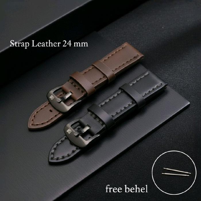 Strap tali jam tangan kulit leather 24mm seven minute original Watch - Strap kulit hitam
