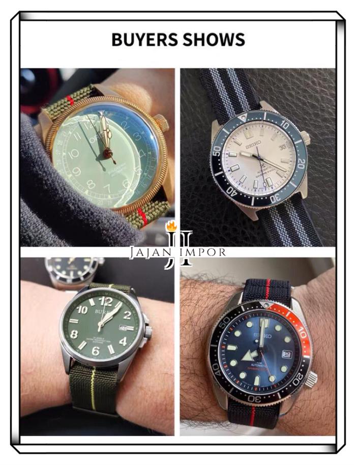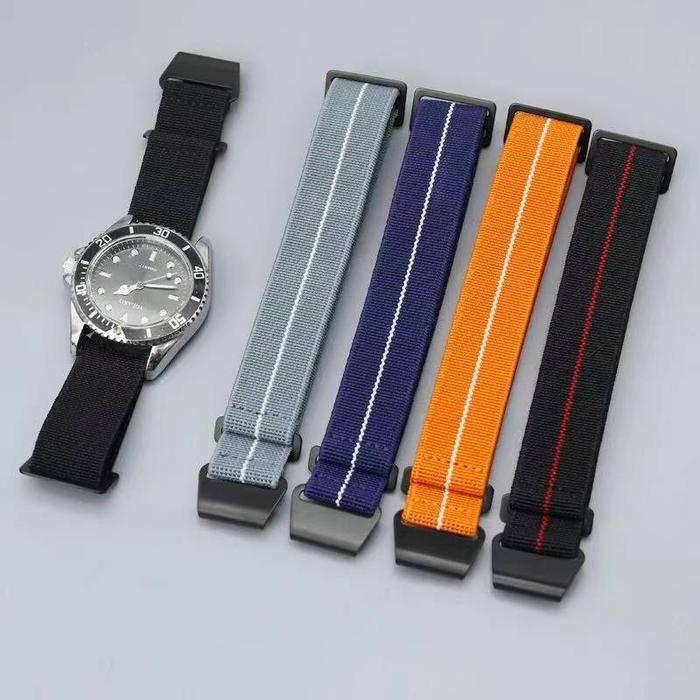strap tali jam 20mm 22mm French Marine Nationale Diver universal Parasut Elastic Nato - black red 20mm