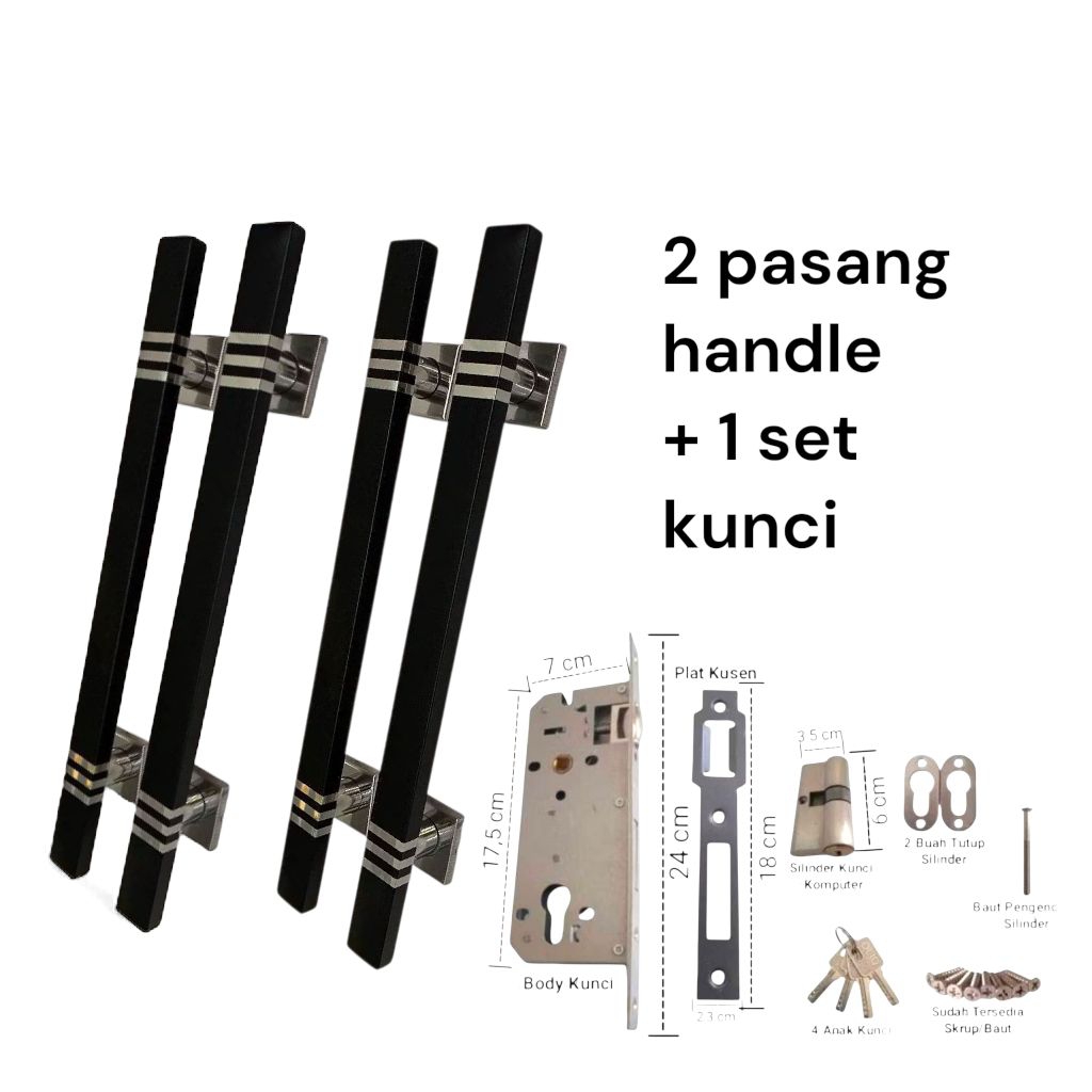 Handle Pintu Hitam Garis Tiga – Desain Minimalis Stainless Anti Karat 33 45 60 cm
