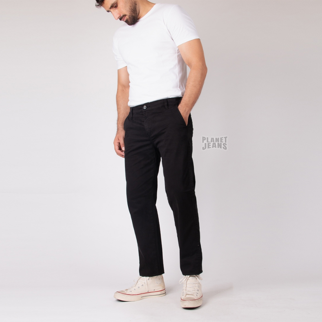 Planet Jeans - Celana Chino Pria Hitam Slim Straight Fit - Kadeo Ultimate Chino Pants Modern Slim 393