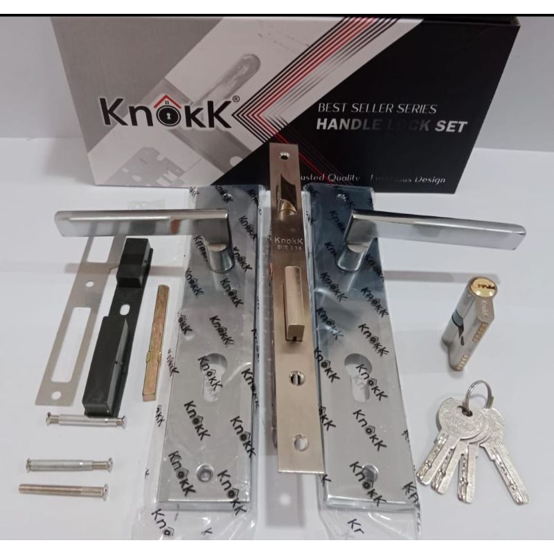KUNCI PINTU BESAR KNOKK 061 SN Handle Besar 25 cm Komplit Kunci Pintu Minimalis Besar Fullset