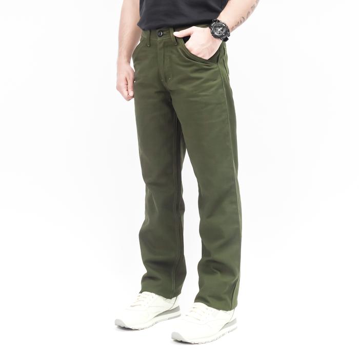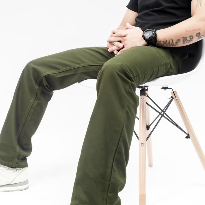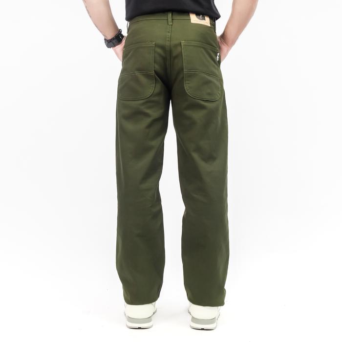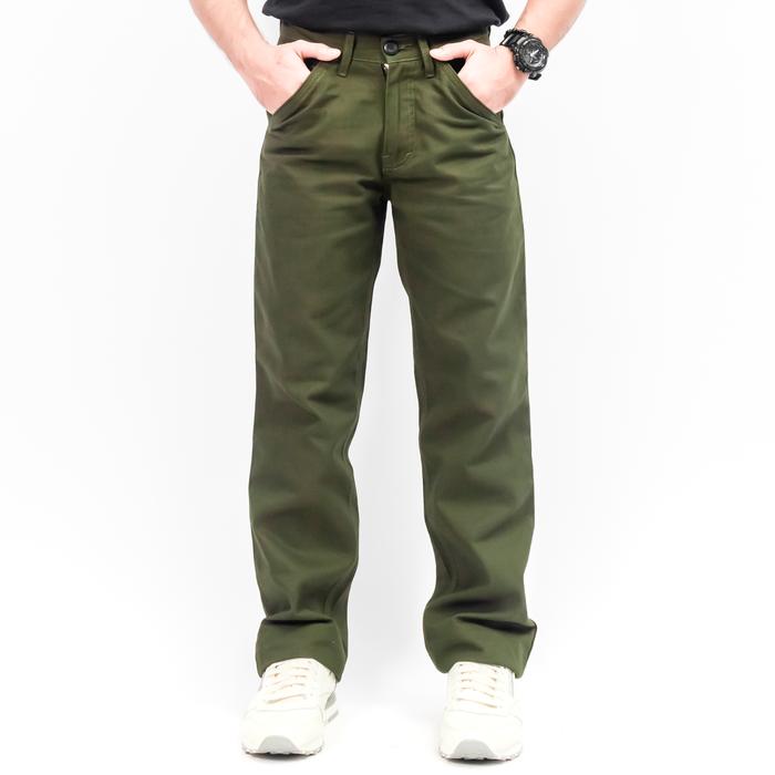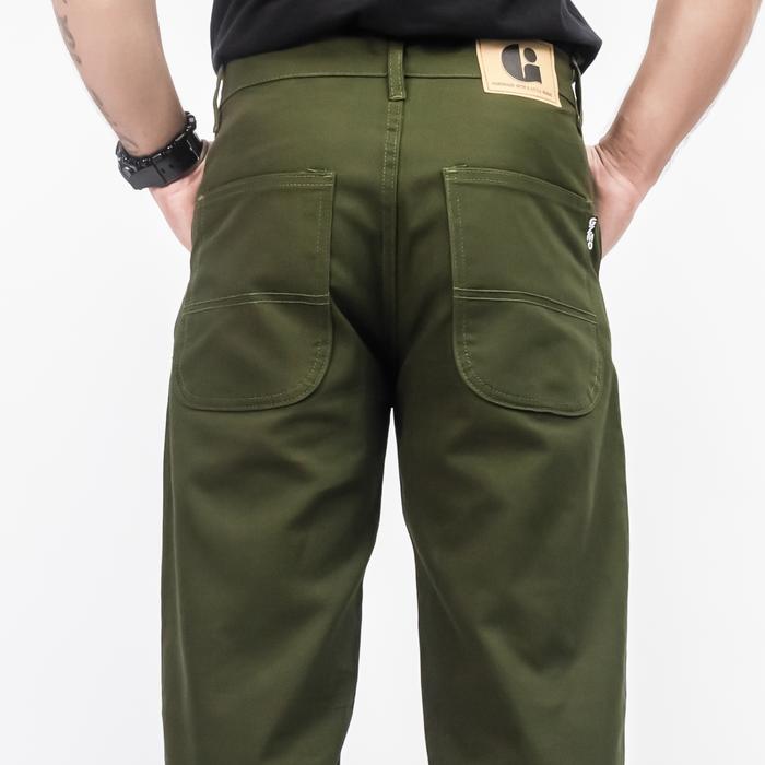 Gizmo - Chino Gombrong Forthright Reguler Hijau Army Loose Pants Celana Oversize Nyaman Panjang Pria - Hijau Army, 28