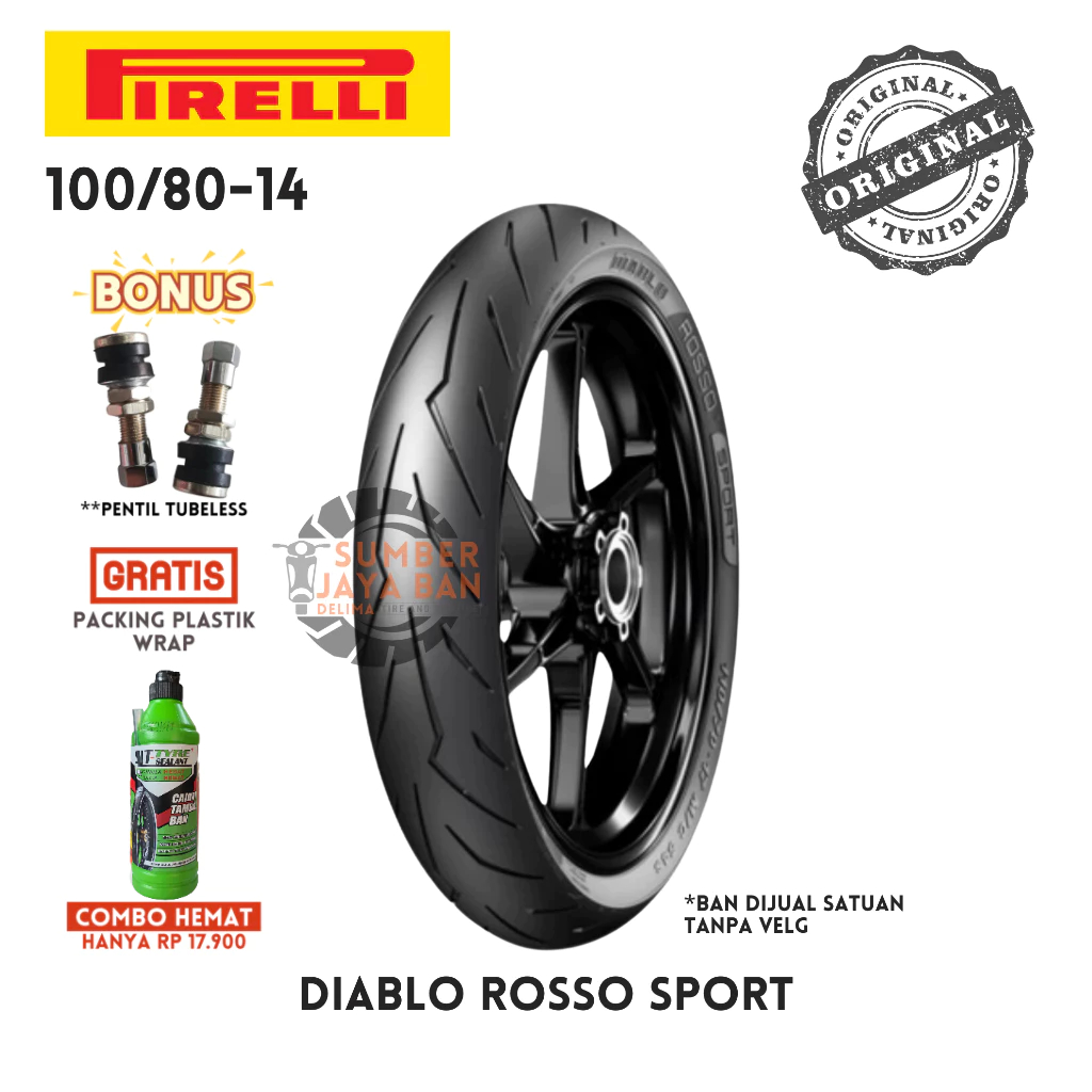 Pirelli Diablo Rosso Sport 100/80-14 Ring 14 100/80 Tubeless Tubles Tubless Ban Motor Vario Mio Beat Esp Scoopy Spacy Xe