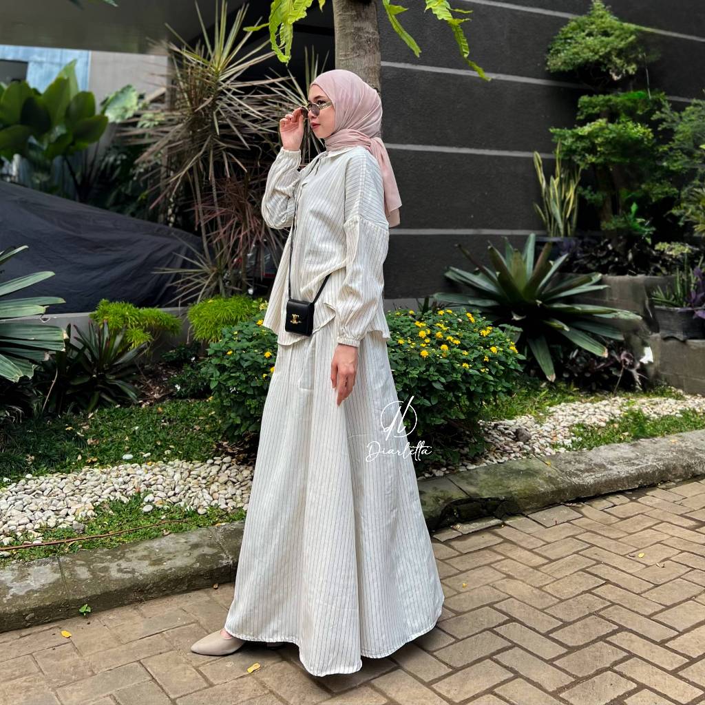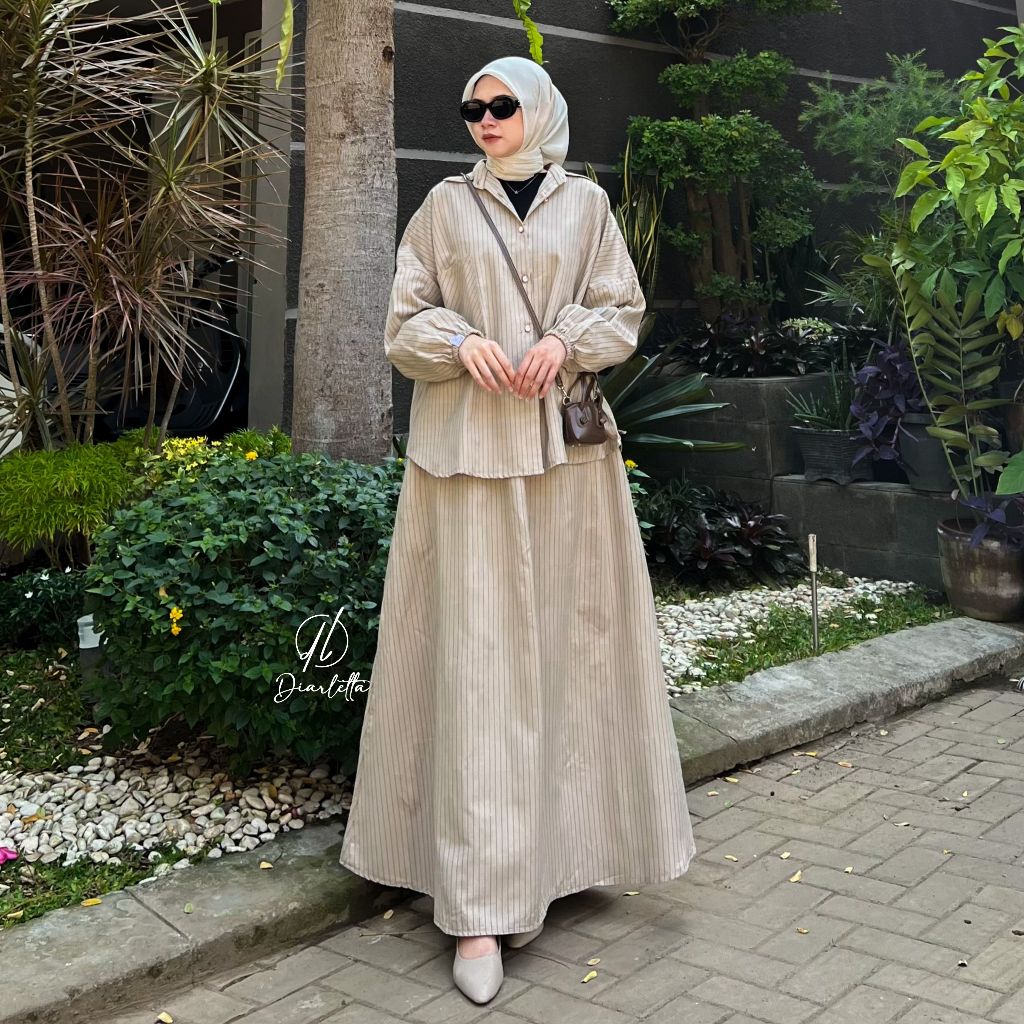 Mirae Set Rok Stripe Linen SemiWool Stripe One Set Rok Umbrella by Diarletta