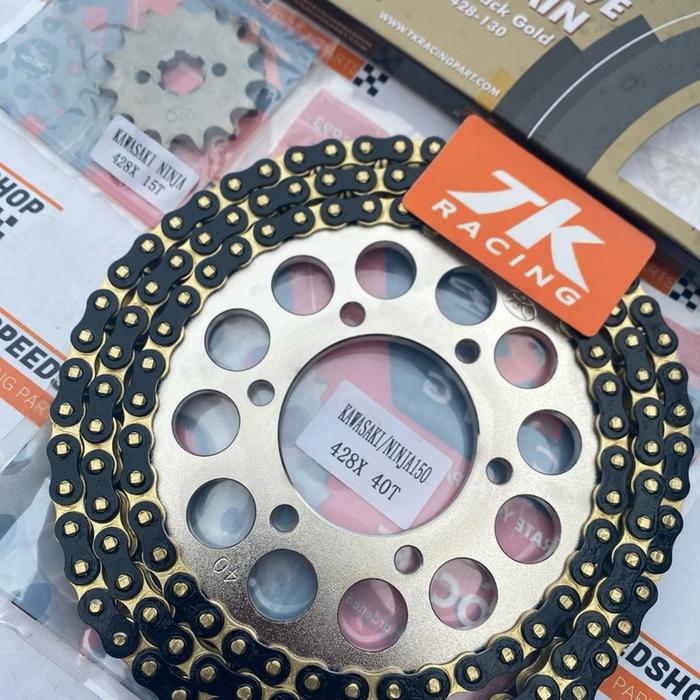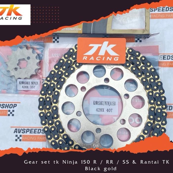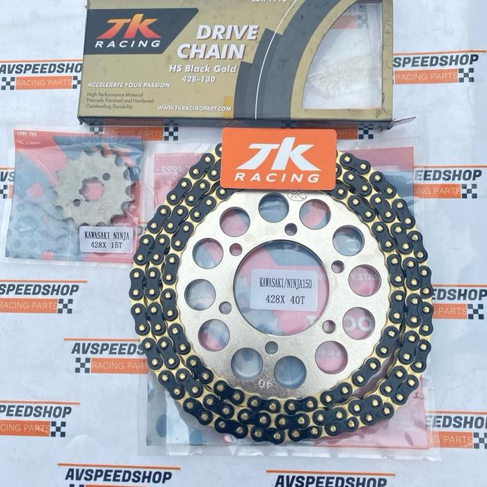 Gir Gear Set TK Ninja 150 R / RR / SS & Rantai TK HS Black Gold 428 130L Plug N Play Kualitas