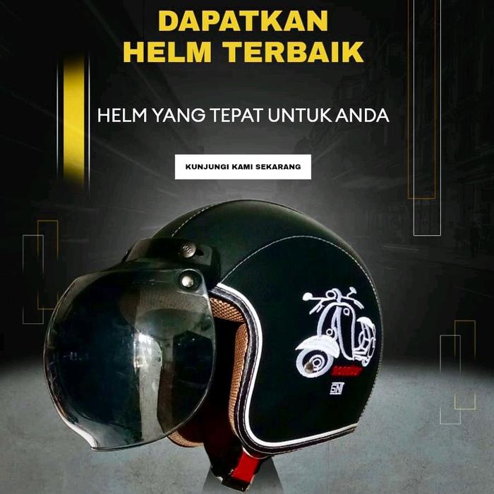 Helm Bogo Dewasa Kulit Bordir Motorcycle - kulit Bordir Vespa kaca Cembung Hitam