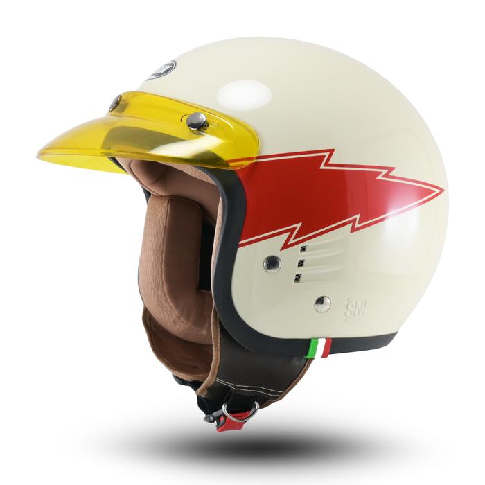 Helm Bogo Retro Motif Terbaru SNI Full Leher Pria Wanita Helmet Motorcycle Shield - Cream Kaca Datar Hitam