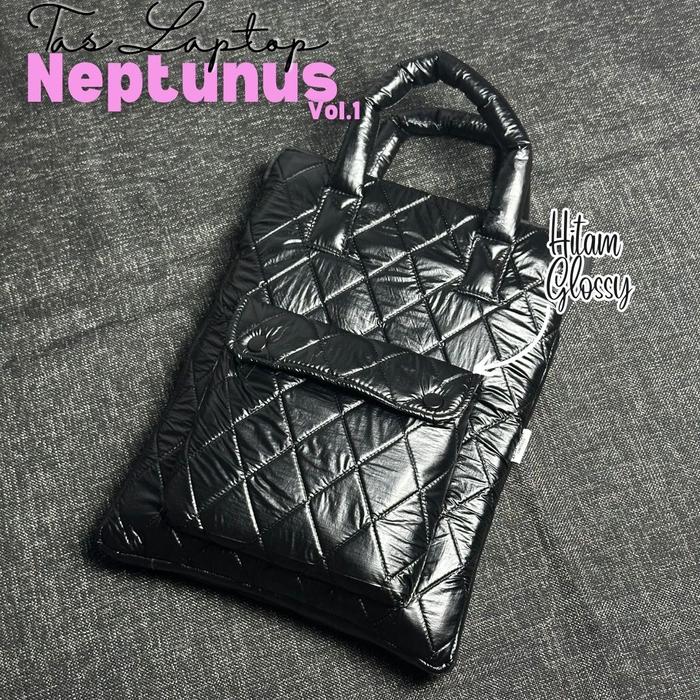 Asfour Neptunus V1 - Tas Laptop 15 inch Puffy Diamond Puffy Parasut Kanvas - Hitam Glossy