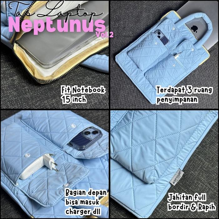 Asfour Neptunus V2 - Tas Laptop 15 inch Puffy Diamond Puffy Parasut - Hitam Glossy