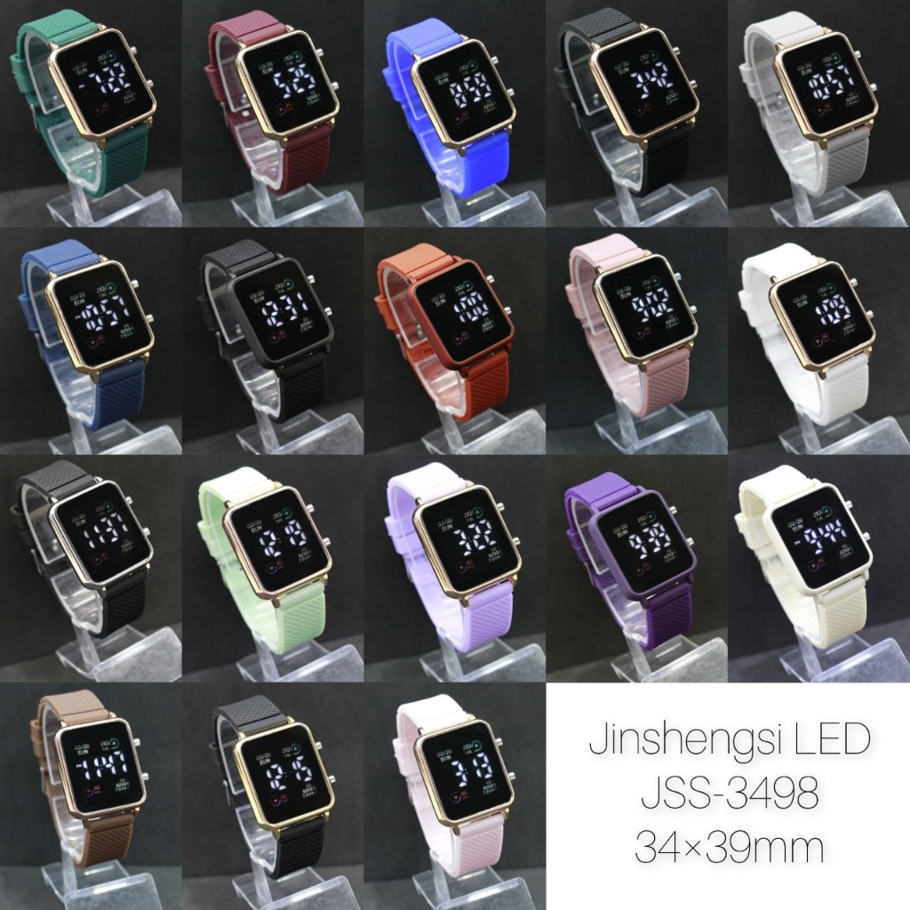 Jam Tangan LED Watch JSS3498 Kotak Cewek Cowok Strap Rubber