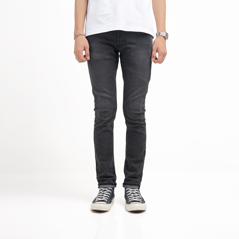 Volkvog Jeans Utah Grey Celana Panjang Washed Denim Pria Superslim Abu Gelap