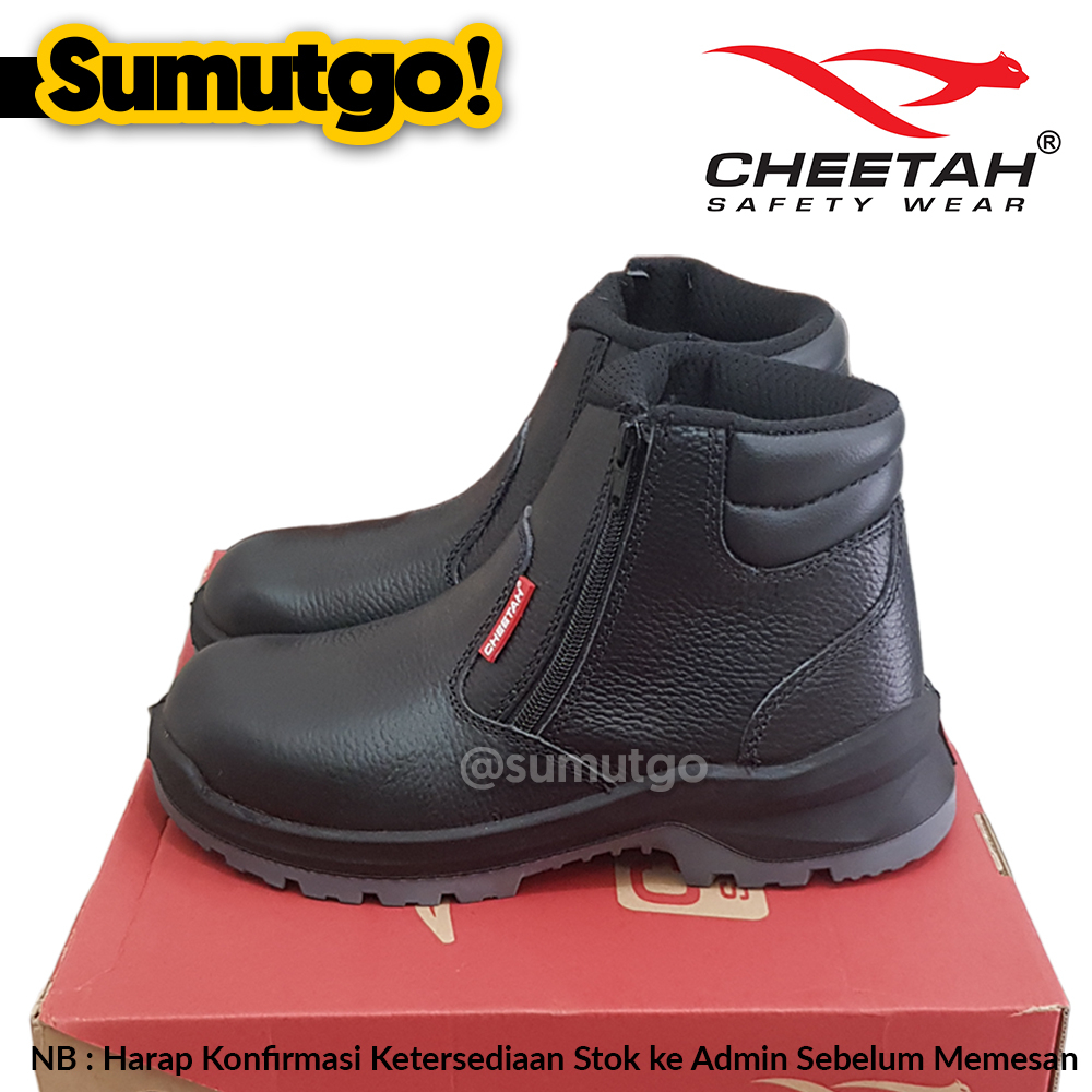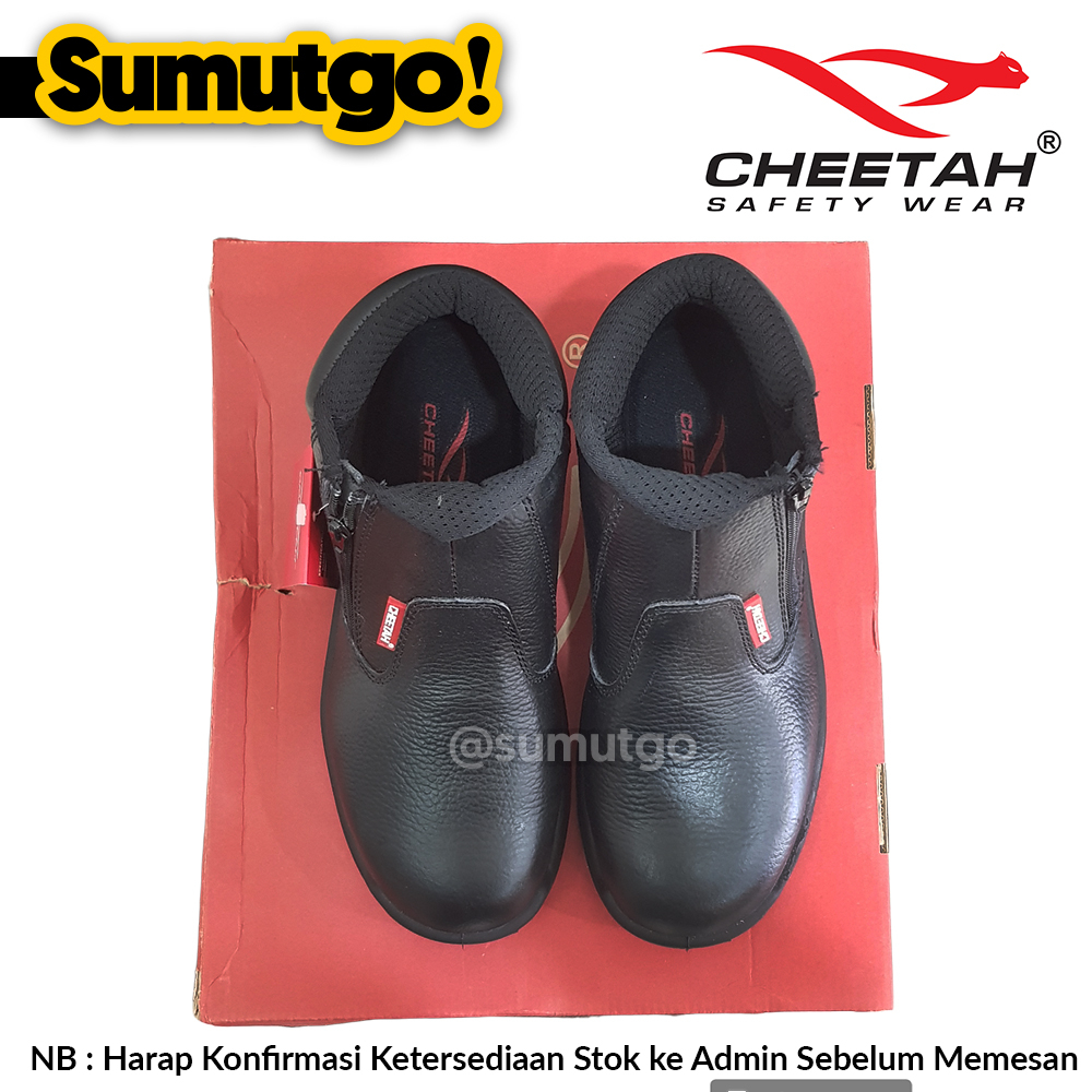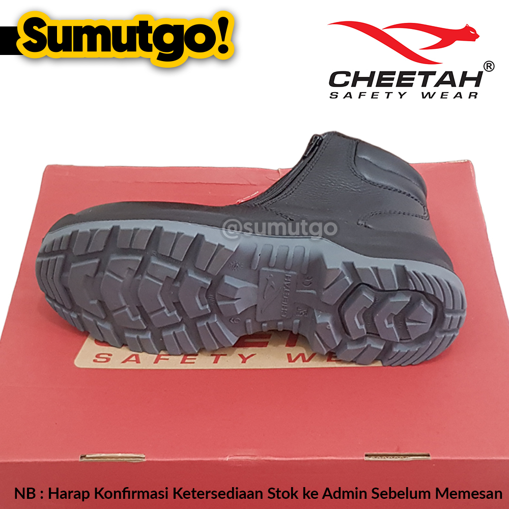 Cheetah 7111H Sepatu Safety Proyek Semi Boot Resleting Hitam / Safety Boots Zipper 7111 H Tapak Dual Polyurethane PU Ant