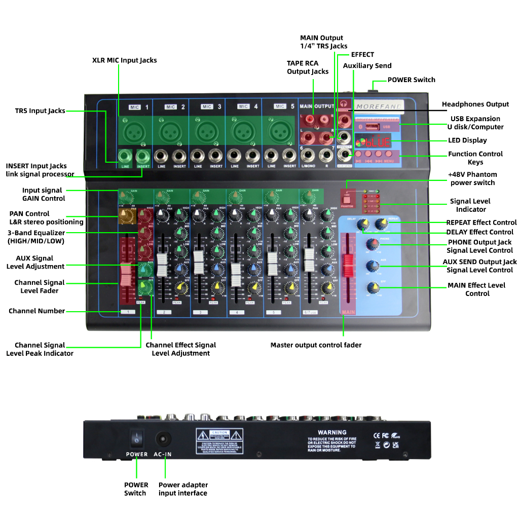 Mixer Audio Audio Mixer DJ Mixer MOREFAND F4/F7 4/7channels Bluetooth /USB/PC/MP3 Player Bernyanyi for Stage /Soundcard