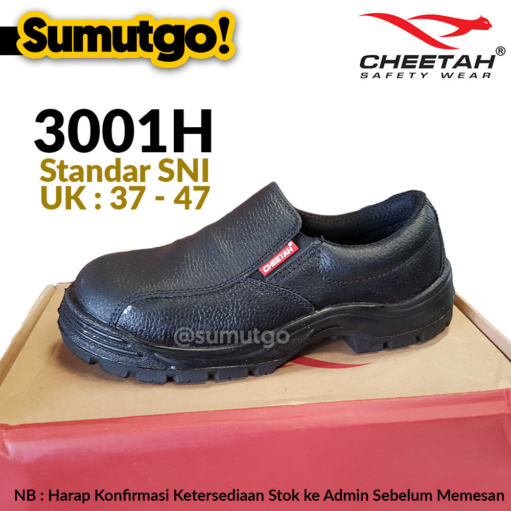 [ TERLARIS ] Cheetah 3001H Sepatu Safety Proyek Pendek Tanpa Tali Hitam / Safety Shoes Slip On 3001 H Tapak Karet Polyur