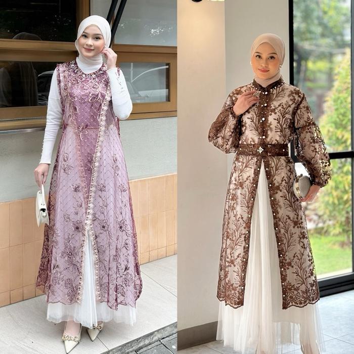Fatunhijabs - Azzura & Qinara Outer Brukat - Hanya Outer Saja Muslim Outer Wanita Panjang Cardigan Atasan Kardigan - Bur