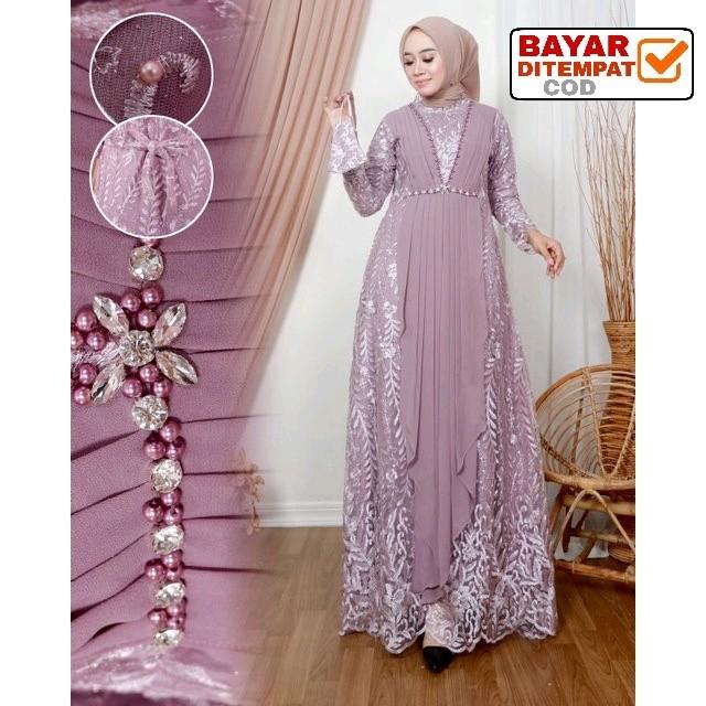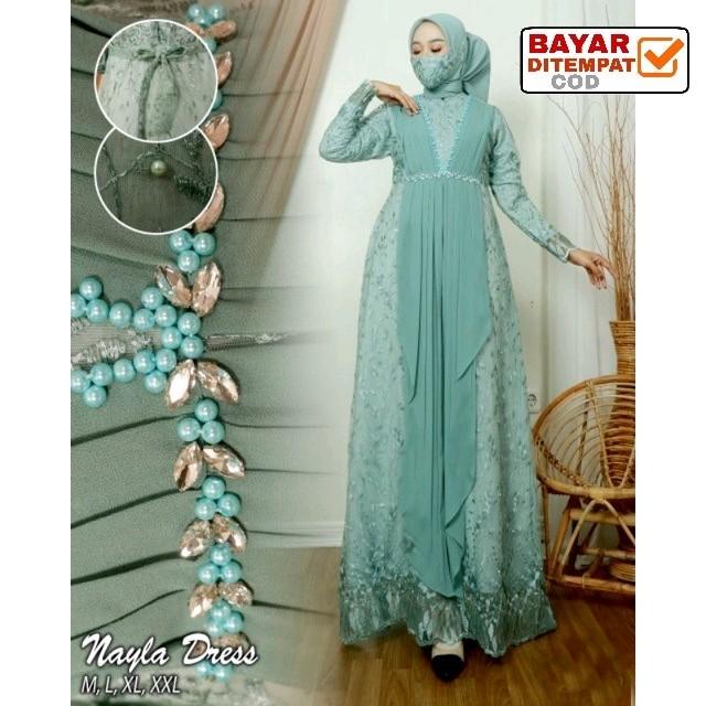 Gamis Brukat Terbaru Baju Wanita Jumbo Abaya Kebaya Dress Muslim Nayla Naila Syari Remaja Kekinian Kondangan Mewah Navy