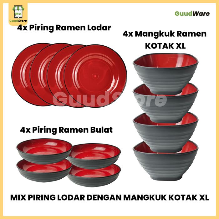 (PAKET 1 LUSIN) PAKET RAMEN PIRING MIX DENGAN MANGKUK KOTAK XL Dapur - Mix piring SEGI kotak xl