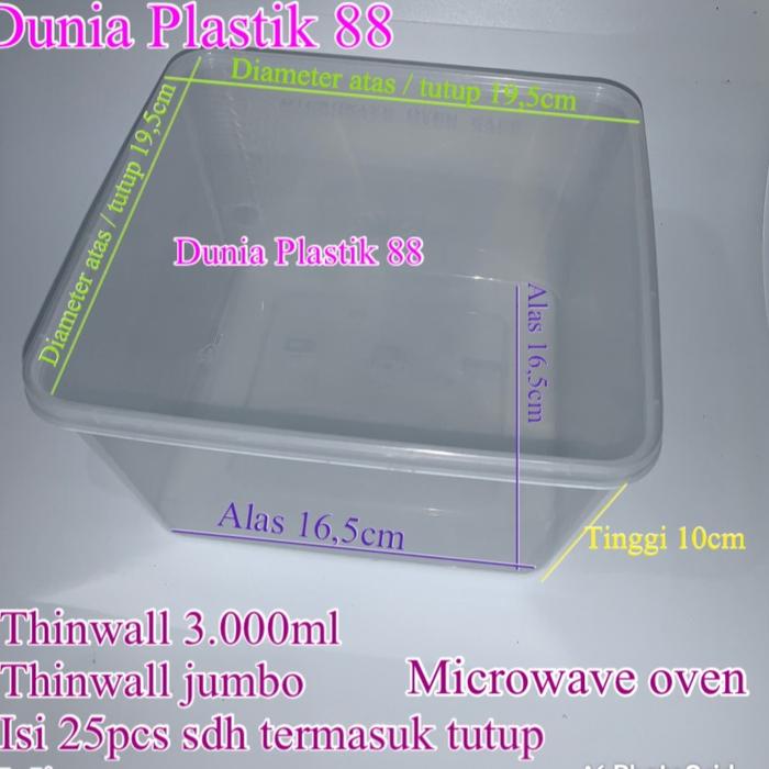 isi25pcs 3.000ML 3000ML thinwall jumbo besar tahan anti panas + tutup - 3000ml