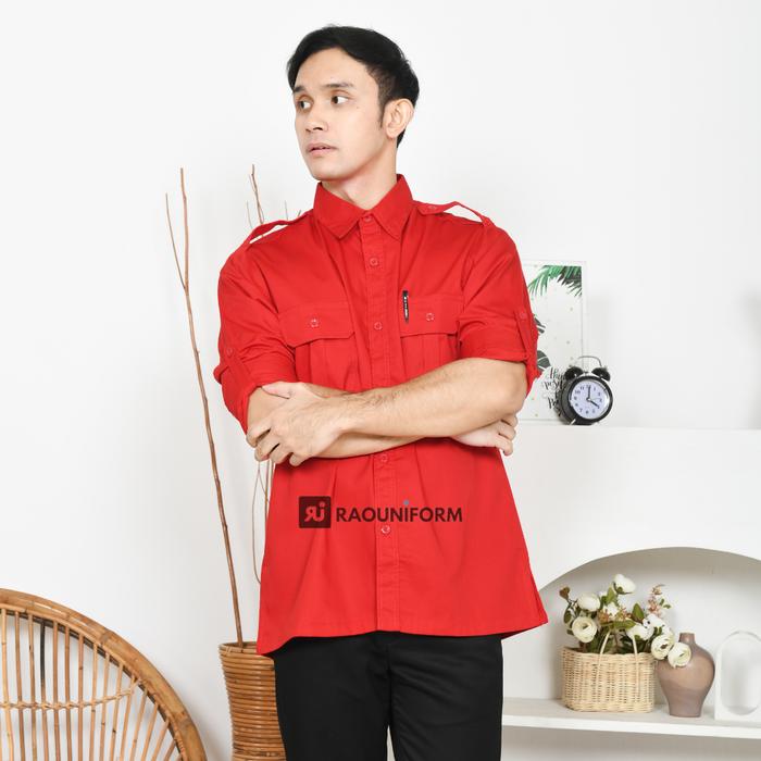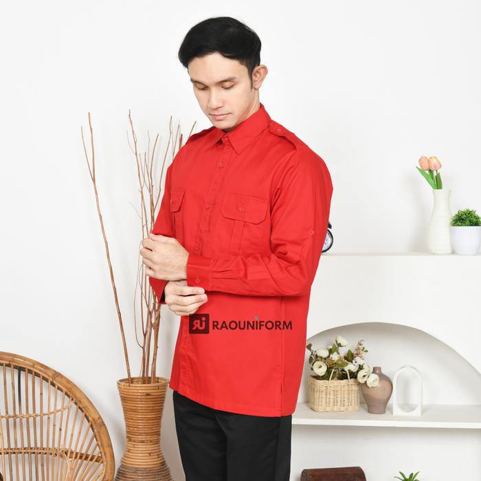 RAOUNIFORM Seragam PDL Lengan Panjang Pria Merah Cabe Saku Multifungsi American Drill