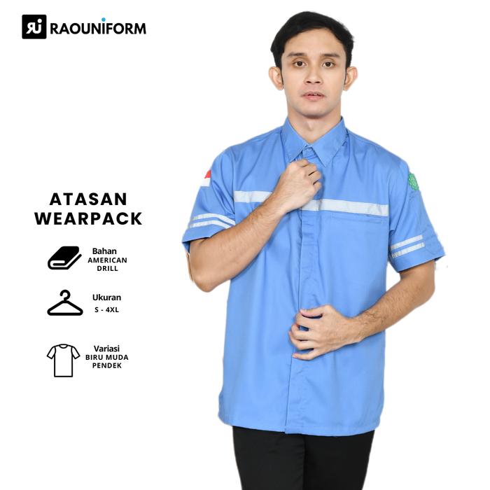 RAOUNIFORM Atasan Wearpack Biru Muda Lengan Pendek Atasan Bordir Seragam Proyek pria Seragam Safety