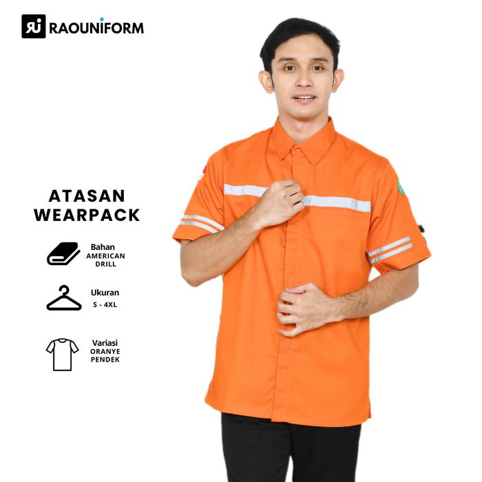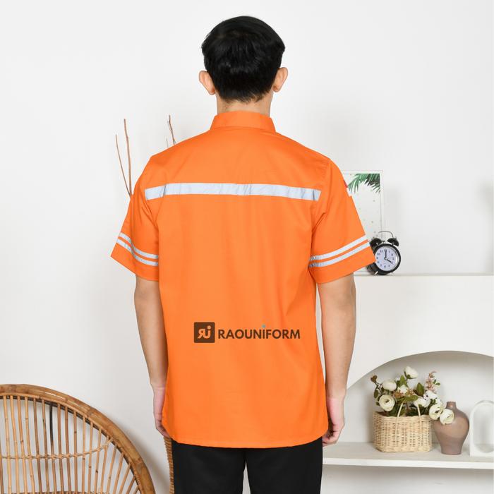 KHUSUS BORDIR-RAOUNIFORM Atasan Wearpack Lengan Pendek Pria Custom Bordir Oranye Seragam Proyek