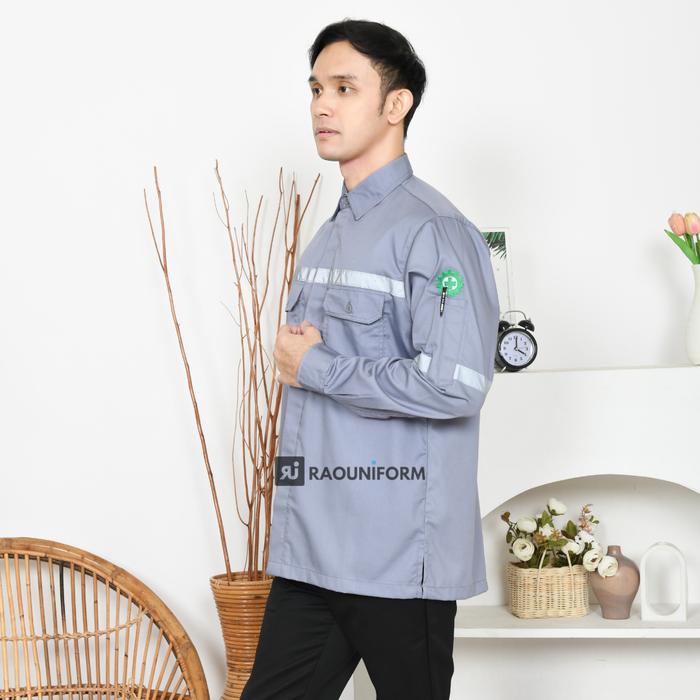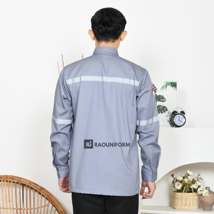 RAOUNIFORM Baju Wearpack Abu Muda Safety K3 Proyek Tambang Lengan Panjang Atasan Seragam Teknisi