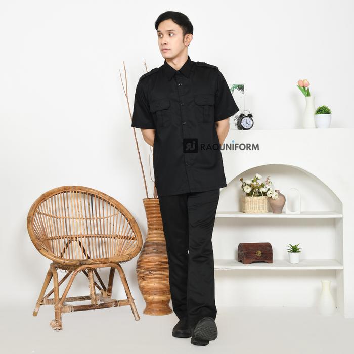 RAOUNIFORM Seragam Kerja Lapangan Baju Dinas PDL Pria Warna Hitam Lengan Pendek Seragam Kantor Pria