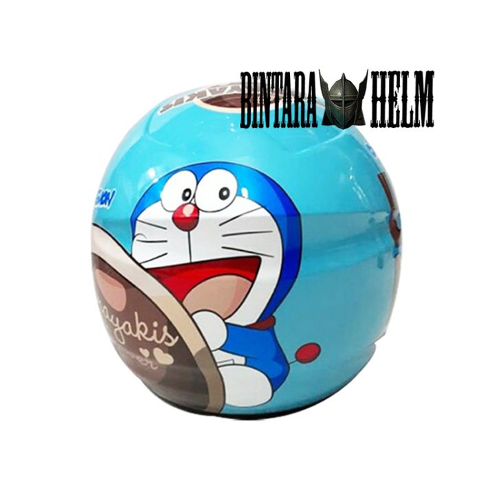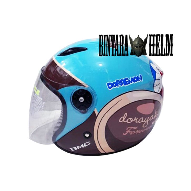 PROMO HELM BMC MILAN MOTIF DORAEMON DORAYAKI BLUE PASTEL BROWN ORIGINAL HELM HALF FACE SNI TERBARU