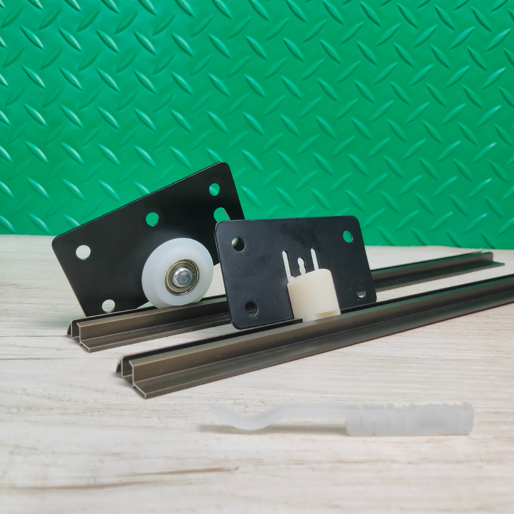 Paket Rel 2 Pintu Lemari Sliding Geser LAS 380 4 Rel Lenaga 1 Meter dan 4 Set Roda SD 380