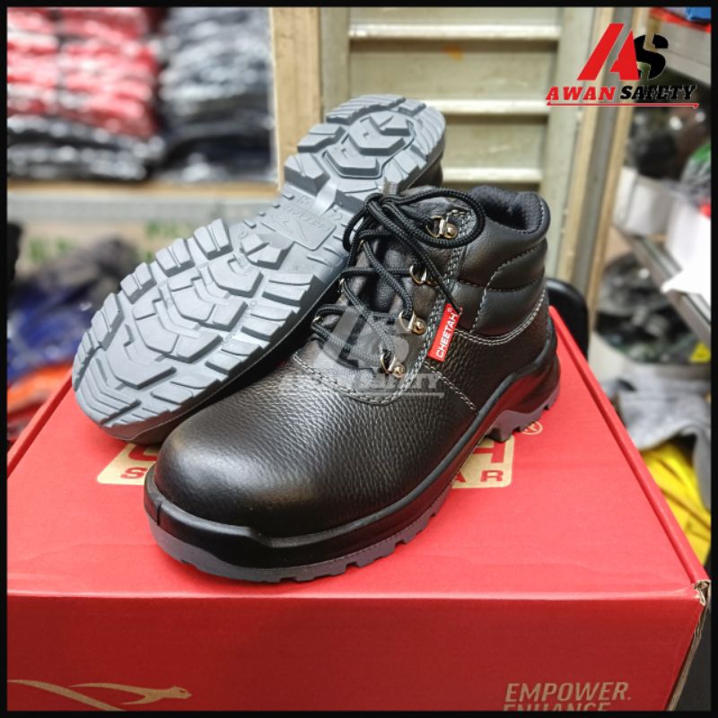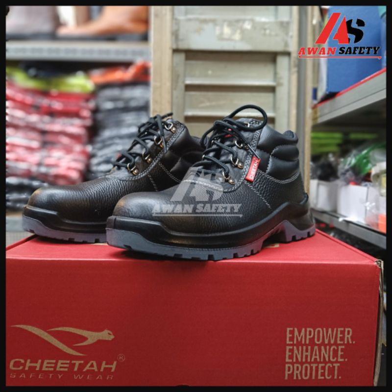 Sepatu Safety CHEETAH 7106H Black/ Sepatu Kerja Pria Septy Cowok Kulit Asli Besi Original